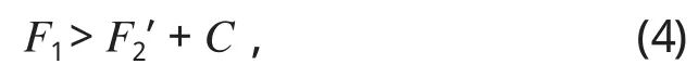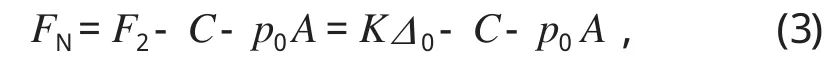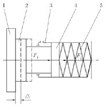 如圖1所示,F(xiàn)1為油壓力,F(xiàn)2為彈簧預(yù)壓縮力。顯而易見,盤形制動(dòng)器是靠油壓力 F1松閘,彈簧預(yù)壓縮力 F2制動(dòng)來實(shí)現(xiàn)其功能的。