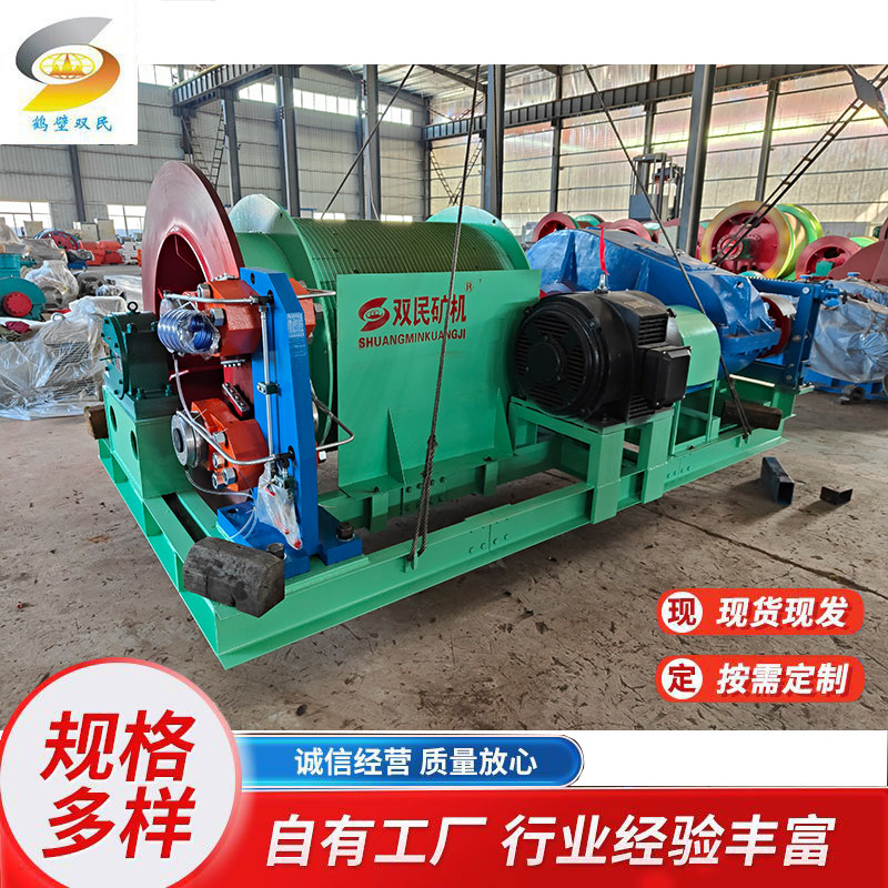 它主要用于礦井中升降人員、提升煤炭、矸石、物料等。其工作原理通常是通過(guò)電動(dòng)機(jī)帶動(dòng)卷筒旋轉(zhuǎn),卷筒上纏繞的鋼絲繩實(shí)現(xiàn)重物的升降。